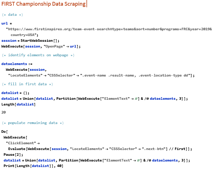 Looking for something else, I collected data for which teams qualified for the world championship by coding a program that navigates the FIRST website, like a person would, and scrapes the list of qualifying teams off of it and their zip code.