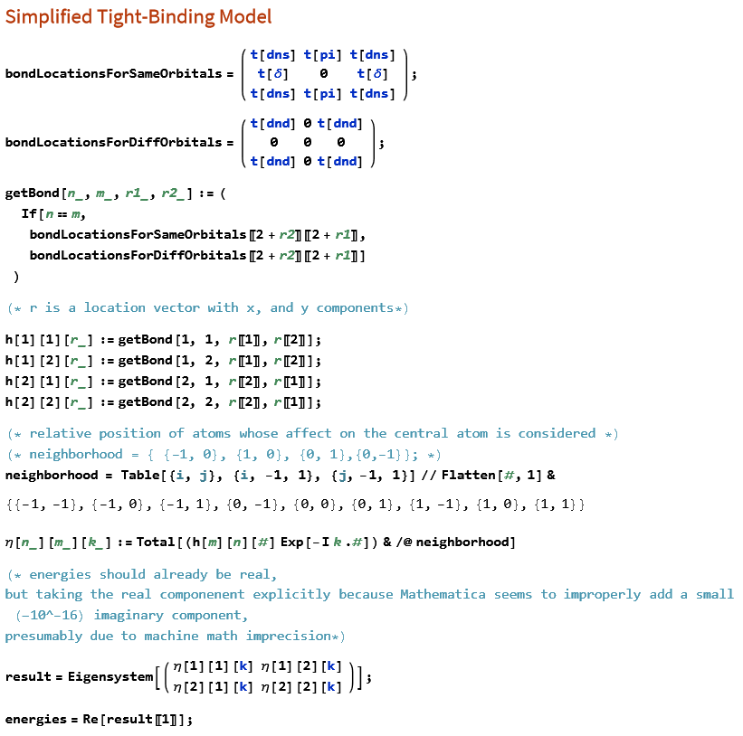 The energy band structure can be approximated with the tight-binding model which simplifies the math involved be assuming all electrons each belong to a fixed site on the lattice. Initially the goal was to do this computation on a hyperbolic lattice, but that goal shifted to implementing a tight-binding model for the more traditional Bravais lattice as proof-of-concept because I wanted to get the model right before extrapolating to the more novel situation.